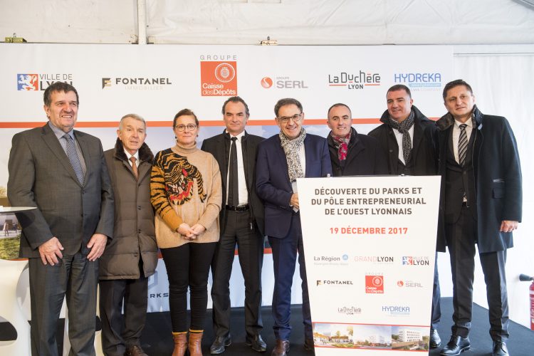 Mardi 19 décembre, présentation du Parks et du Pôle entrepreneurial de l’Ouest Lyonnais en présence de David Kimelfed (Président de la Métropole de Lyon), Bernard Bochard (Mairie du 9ème), Michel Lefaou (1er adjoint Vice Président de la Métropole de Lyon délégué à l’urbanisme), Jean-Luc Da Passano (Président de la SERL), Barbara Belle (Directrice déléguée Auvergne Rhône-Alpes de la Caisse des dépôts) et Philippe Jolivet (Directeur Général d’Hydreka).